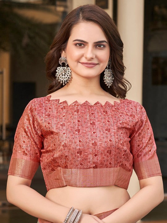 Soft Silk Brown And Pink Mysore Saree With Zari Border And Latest Blouse Fabric