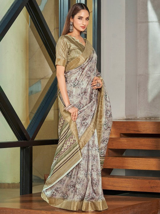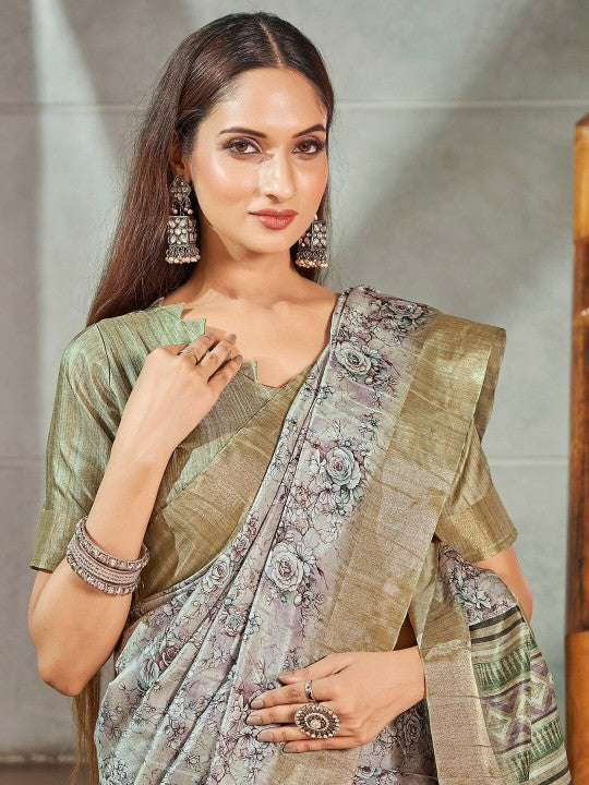 Function Ready Saree Grey Pure Soft Art Silk With Pattu Print Design