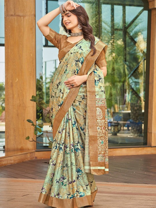 Graceful Brown Art Silk Saree Soft Pattu Print For Ceremonial Occasions