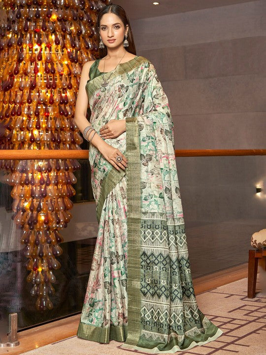 Light Green Wedding Function Saree Pure Art Silk With Handloom Pattu Print