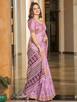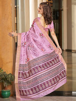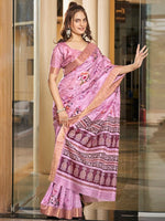 Pink Festive Soft Art Silk Saree Pure Pattu Print For Wedding Events