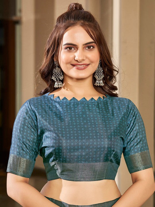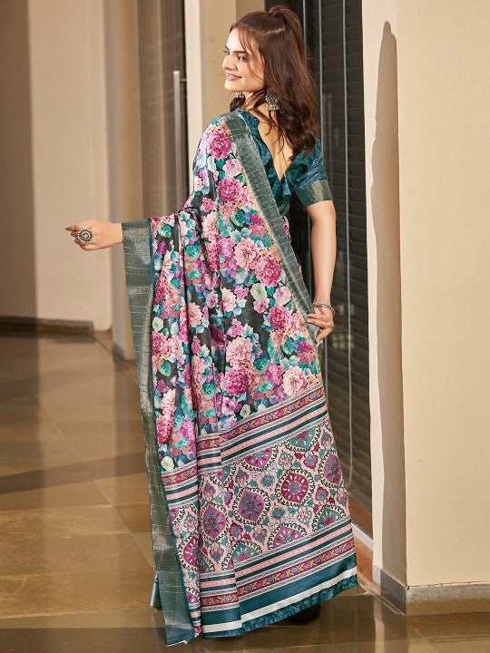 Premium Blue Pattu Silk Saree Printed Handloom Art Silk Designer Drape