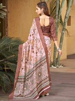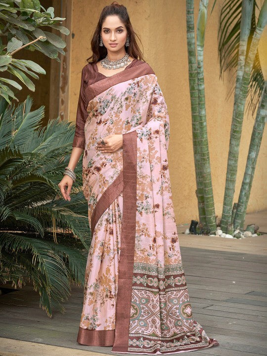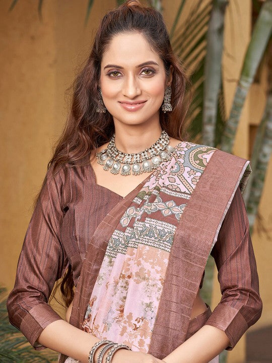 Soft Silk Brown And Pink Mysore Saree With Zari Border And Latest Blouse Fabric