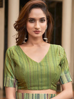 Showstopper Pista And Wine Silk Saree From Mysore With Statement Blouse Piece