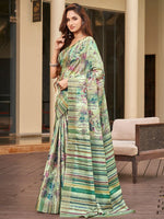Wedding Party Art Silk Saree Green Handloom Designer Pattu Print