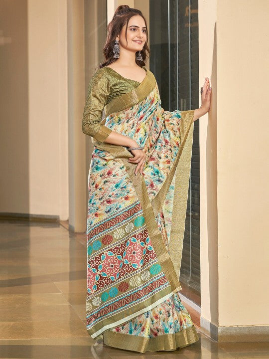 Handwoven Art Silk Saree Green Soft Pattu Print Designer Festive Style