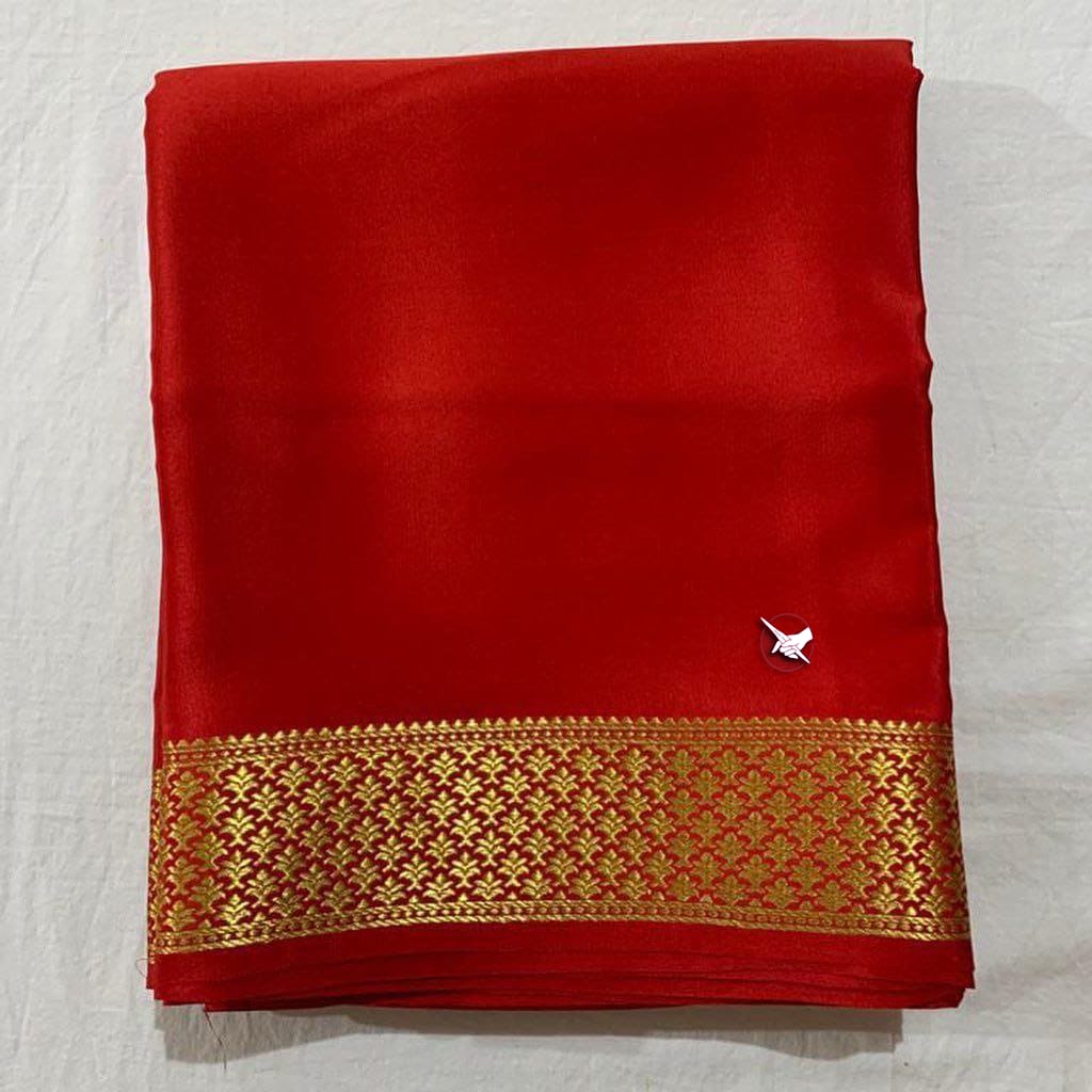 Traditional Plain Mysore Silk Saree With Zari Weaving