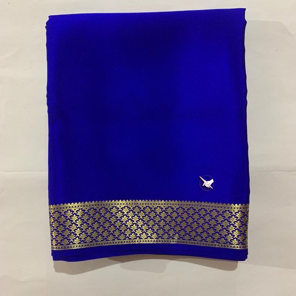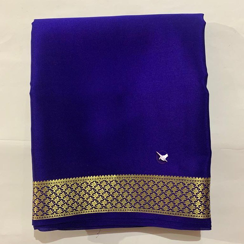 Graceful Plain Mysore Crepe Saree In Royal Blue With Heritage Zari Border Work