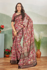 Graceful Maroon Viscose Satin Digital Printed Saree For Functions With Trendy Blouse Fabric