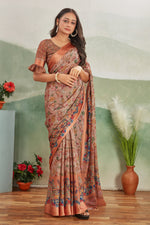 Celebrate tradition with this stunning Pure Viscose Satin Digital Printed Saree. The saree showcases a harmonious blend of classic charm and modern aesthetics, perfect for festive occasions or functions. Designed for elegance, its 5.5-meter drape is complemented by an 0.80-meter blouse material, ready to be styled to your liking. The high-quality viscose satin fabric ensures a graceful flow and luxurious sheen, enhancing its vibrant digital print. Easy to care for, this saree is recommended for dry cleaning to preserve its vivid colors and fine craftsmanship. A timeless addition to your ethnic collection.
