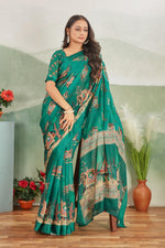 Experience the essence of art and fashion with our Digital Kalamkari saree. The intricate print, inspired by the traditional Kalamkari technique, covers the entire saree, creating a mesmerizing visual. Finished with a stunning zari border, this saree is a luxurious addition to any wardrobe.