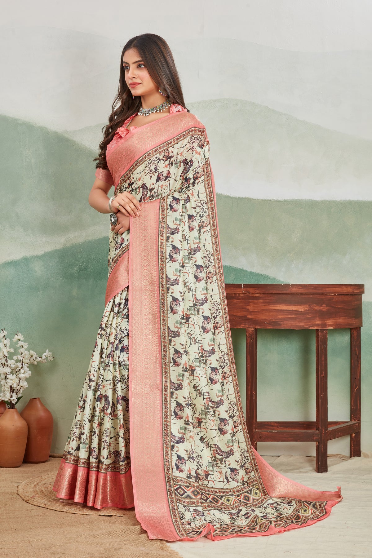 Experience the perfect harmony of vibrant colors and rich textures with our stunning Khadi Border Sarees. Elevate your traditional wardrobe with this symphony of elegance and style. Effortlessly stand out in any occasion.