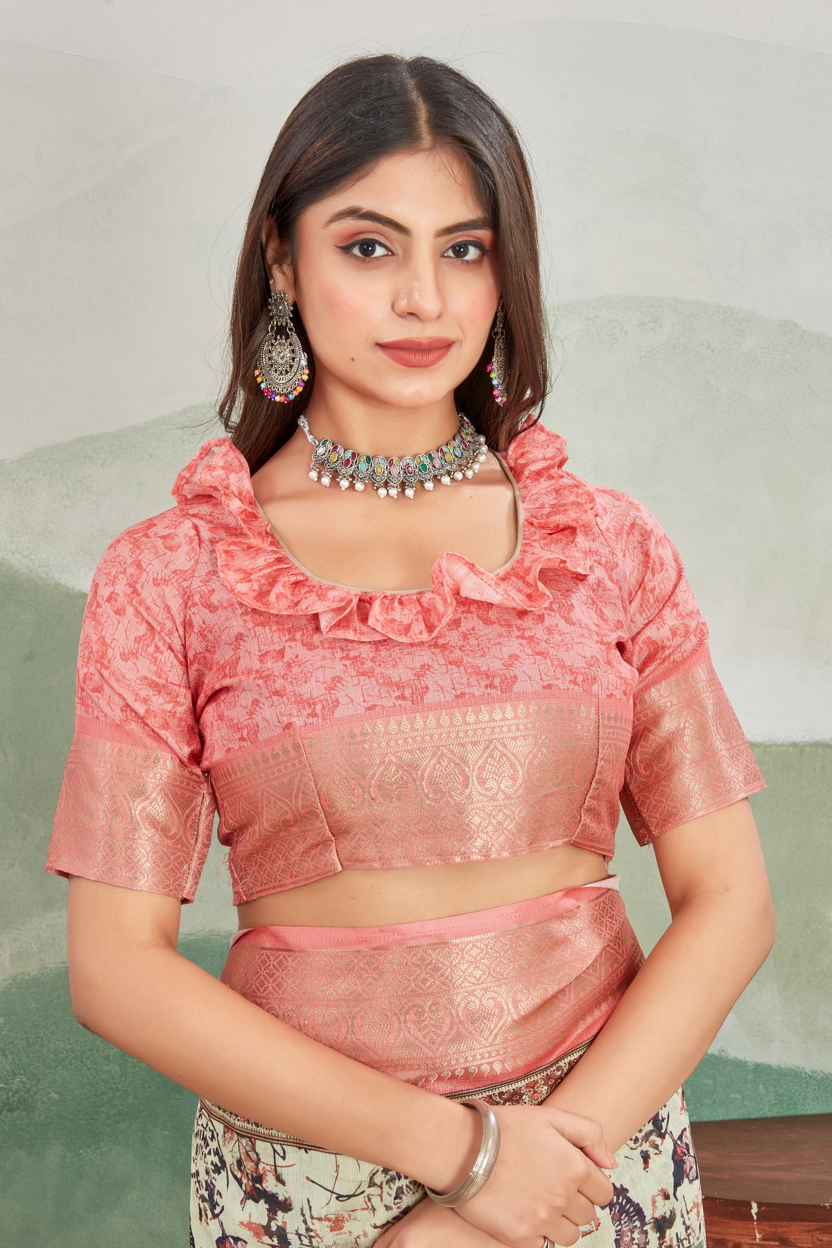 Soft Silk Brown And Pink Mysore Saree With Zari Border And Latest Blouse Fabric