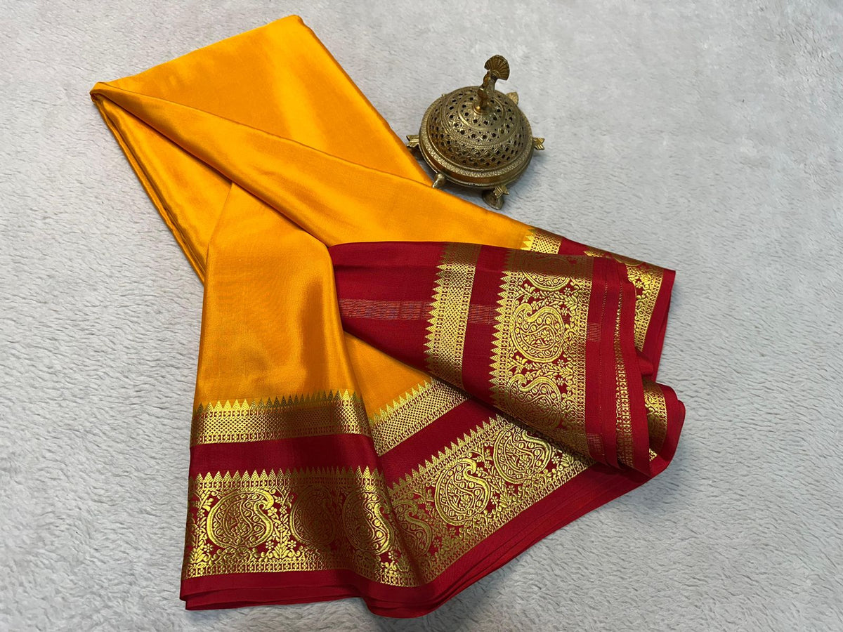 Royal Mysore Silk Soft Saree With Traditional Contrast Border Work