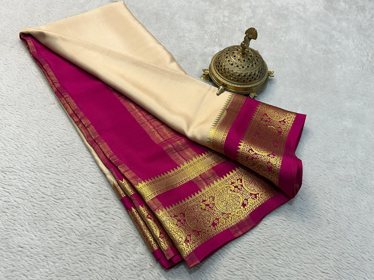 Designer Pure Mysore Silk Saree With Subtle Contrast Border Design