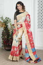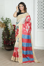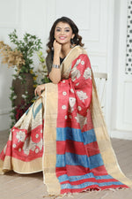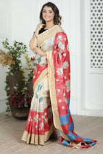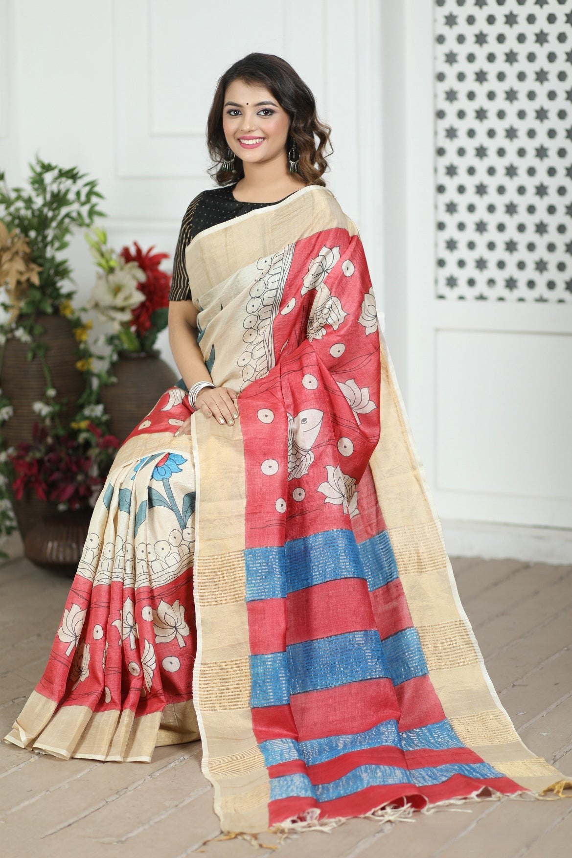 Handloom Tussar Silk Saree Adorned with Kalamkari Patterns