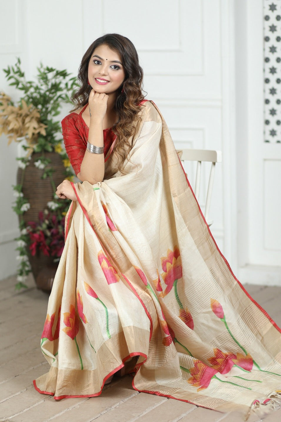 Handloom Tussar Silk with Vibrant Kalamkari Artwork