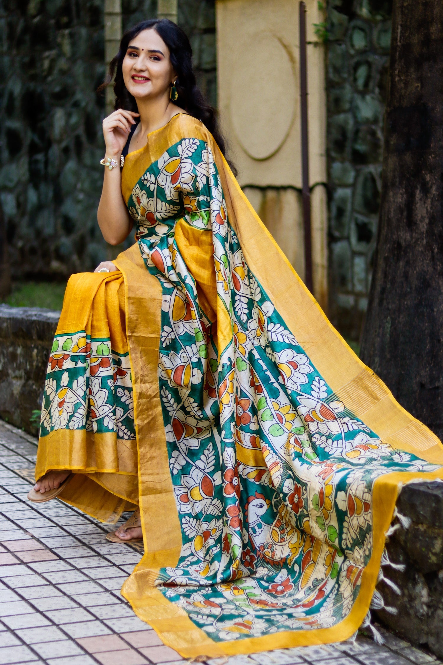 Handwoven Tussar Silk Saree with Exquisite Kalamkari Design