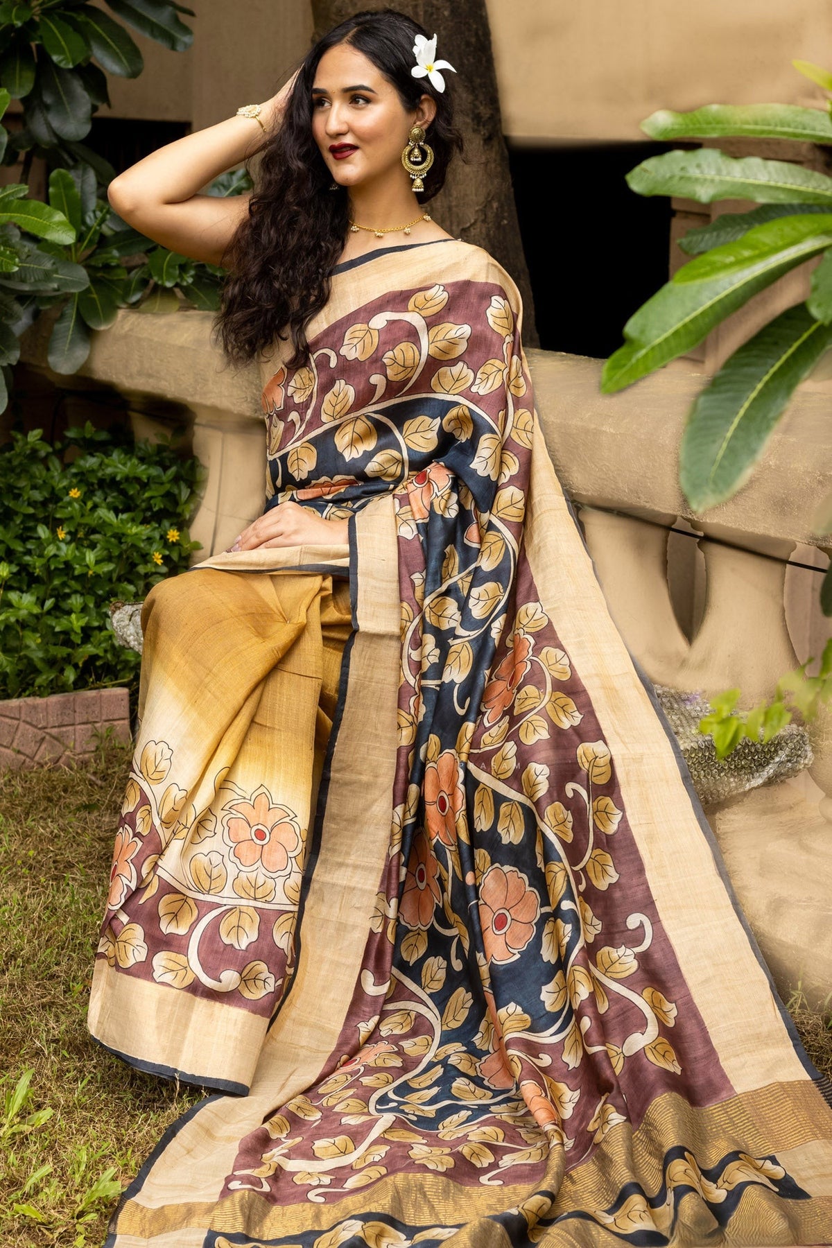 Pure Tussar Silk Saree with Intricate Kalamkari Print