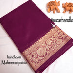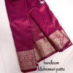 Step into timeless elegance with this Tissue Soft Silk Handloom Maheshwari Pattu Saree. Featuring an exquisite zari weaving border, this saree blends sophistication with tradition, making it the perfect pick for weddings, festivals, or sangeet ceremonies. With a length of 5.5 meters and a coordinating blouse piece of 0.80 meters, it offers the complete traditional ensemble. The fabric’s silky softness ensures both style and comfort, while its plain design is understated yet striking. Pair this saree with your favorite jewelry to create an unforgettable look. For best results, dry clean only. A slight variation in color may occur due to photography.
