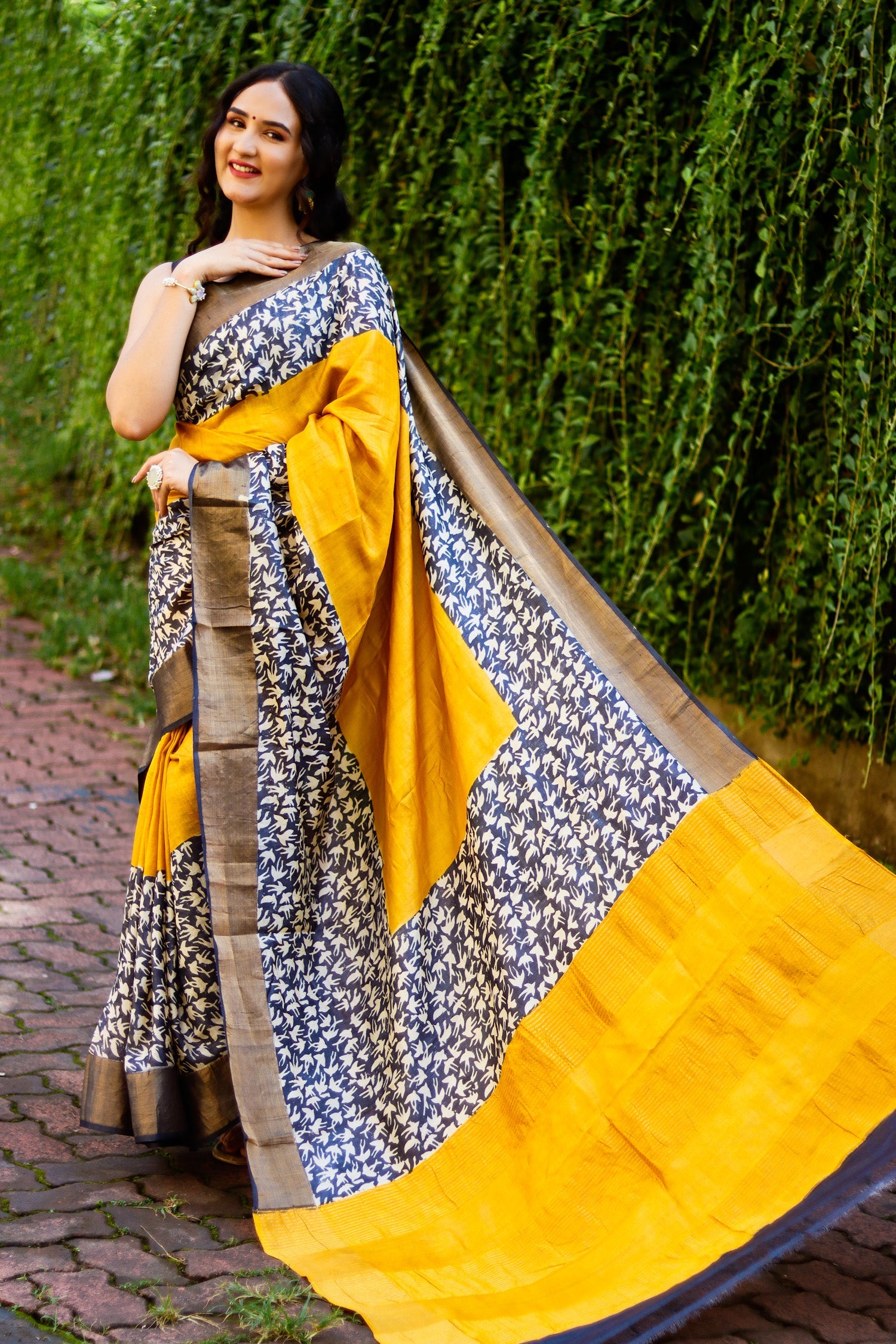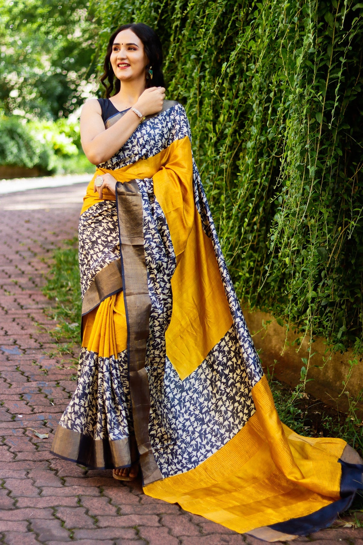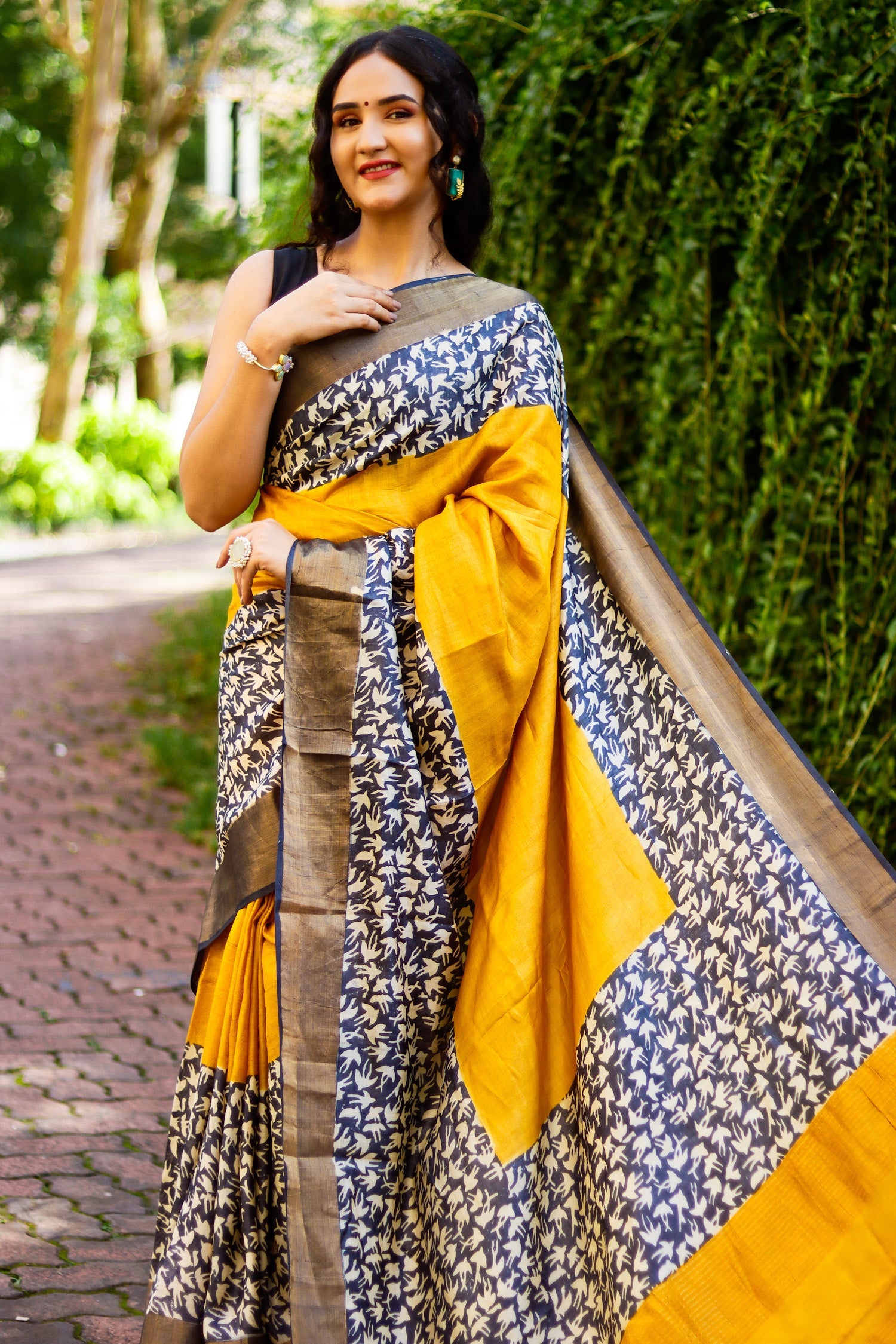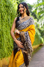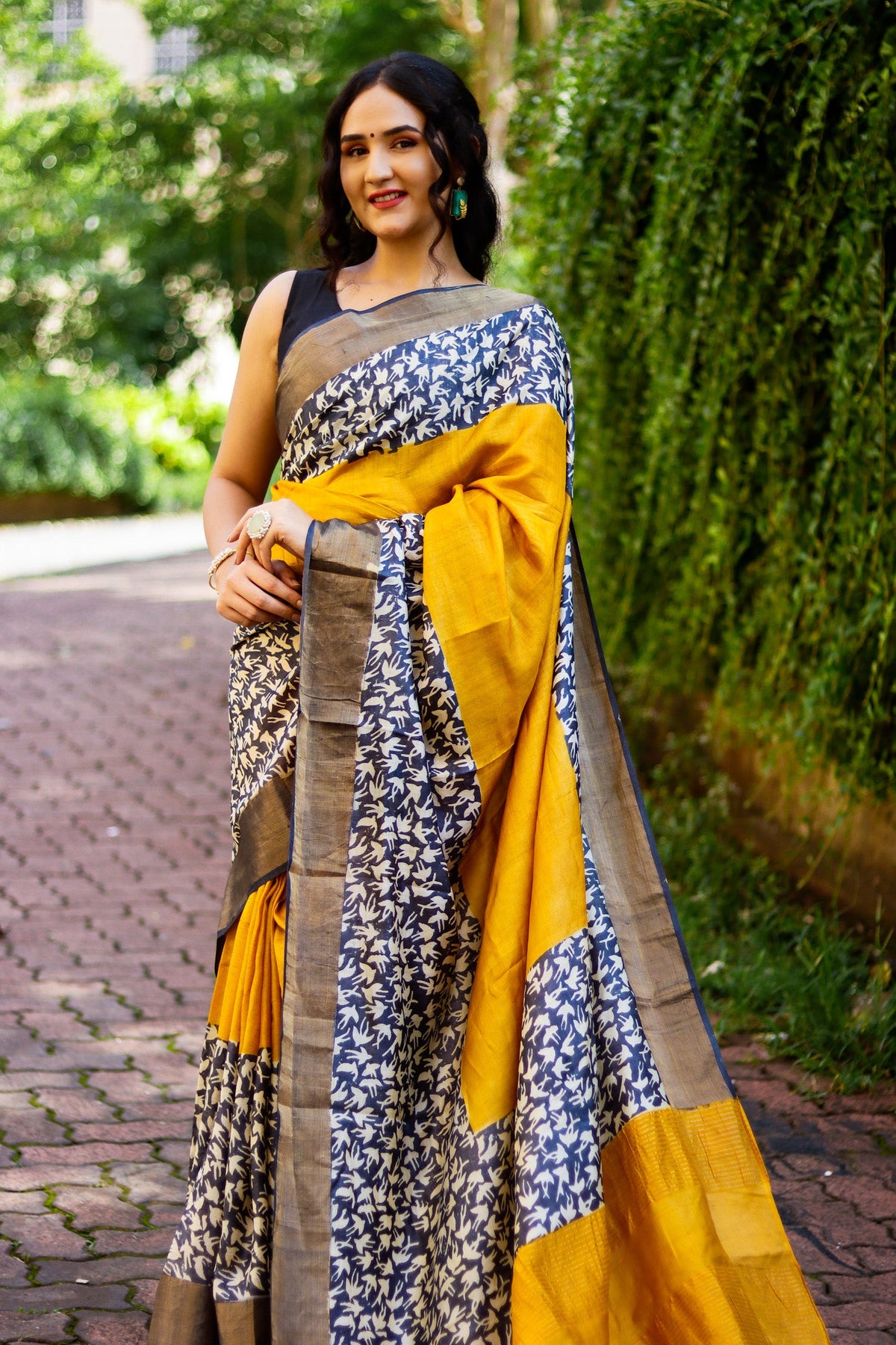 Traditional Tussar Silk Handloom Saree with Kalamkari Art