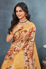 Yellow Soft Pattu Art Silk Saree Handloom Printed Wedding Wear
